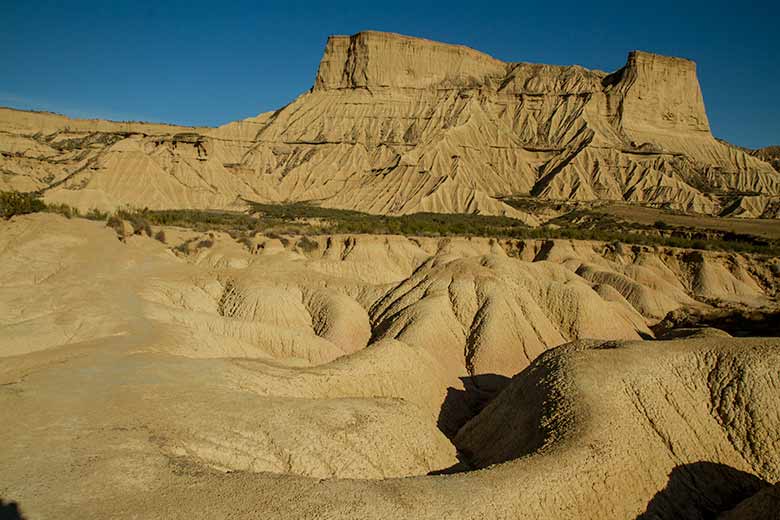 Rien de monotone dans ce désert des Bardenas constitué de steppes, plaines agricoles, pinèdes. Il est composé d’une grande variété de paysages et d’écosystèmes : sommets tabulaires comme le Rallon ou encore la Pisquerra, cheminée de fée dont le fameux Castil de Tierra, emblème des Bardenas, canyons (dit barranco) qui sinuent dans les plaines, falaises abruptes, lissées et sculptées par l’érosion, reliefs adoucis et arrondis par la main artiste de la Nature.