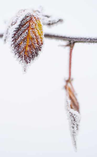 Le givre, ce voile de mariée en dentelle recouvre les paysages, la nature avec délicatesse. Apporté par les éléments immatériels, nuages ou brouillard, le givre restructure les formes et couleurs. Herbes, branches, fleurs séchées, feuilles, fruits, légumes s’enrobent d’un glaçage virginal. Une fleur sèche d’ombellifère, les corolles d’un choux, la baie de cynorhodon se parent de givre et se préparent au bal glacé de l’hiver.